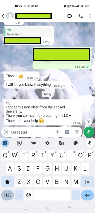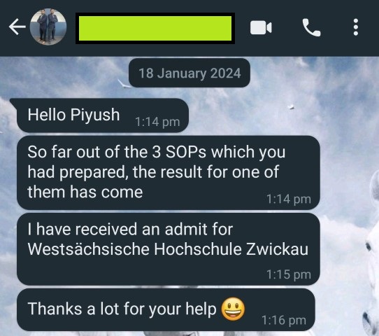 Thank you to Get Admission Abroad for helping me with my VISA SOP Writing Service. I have received my VISA Approval for January 2022 intake with the help of team.